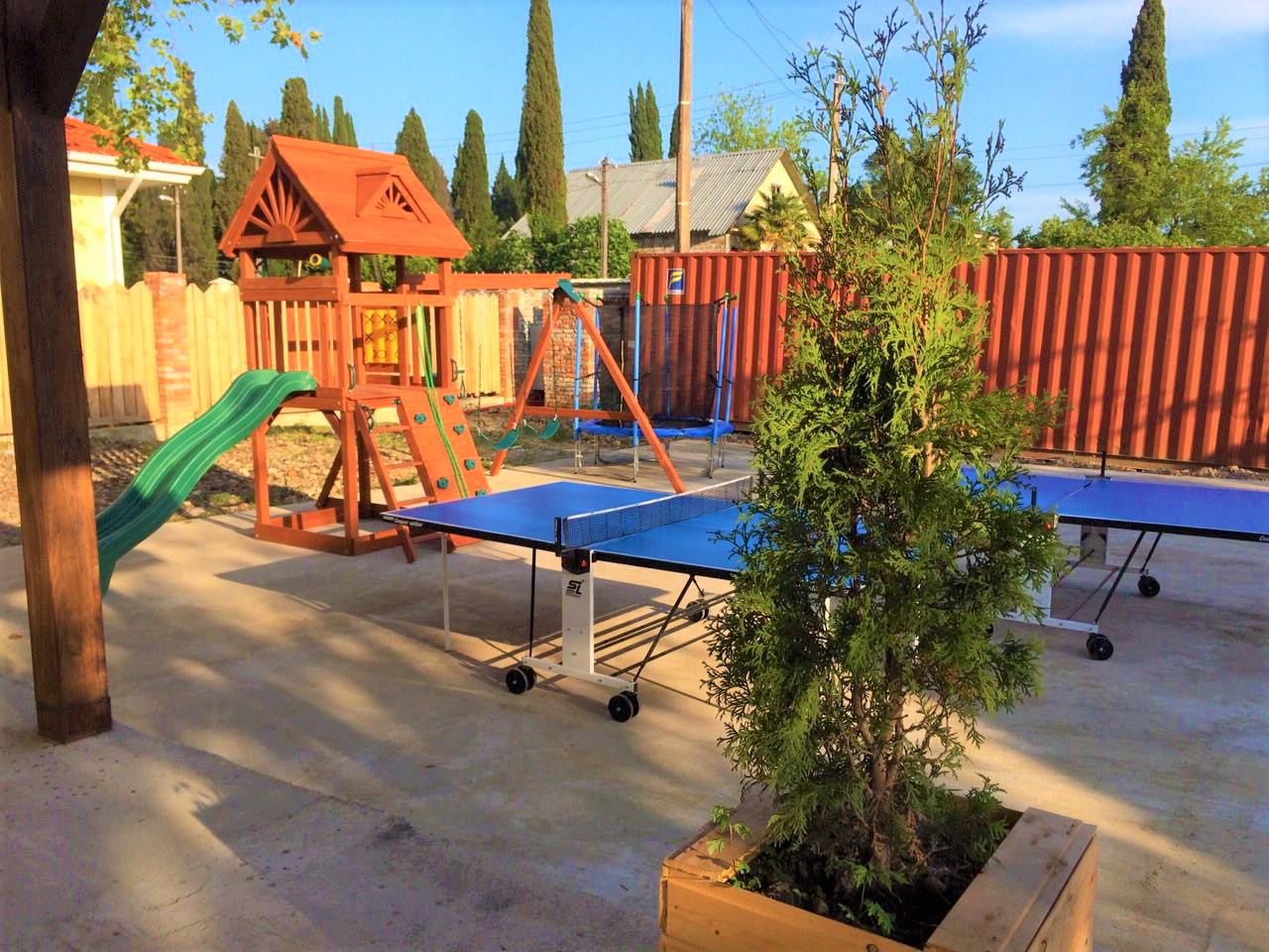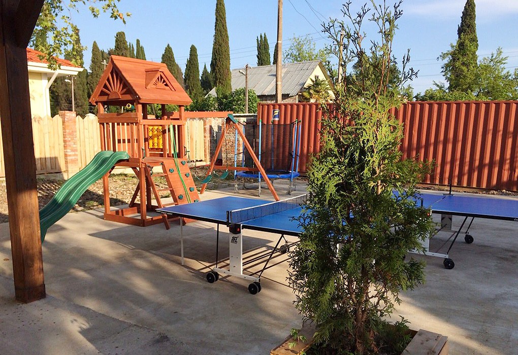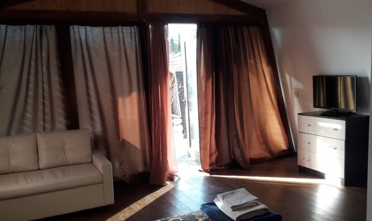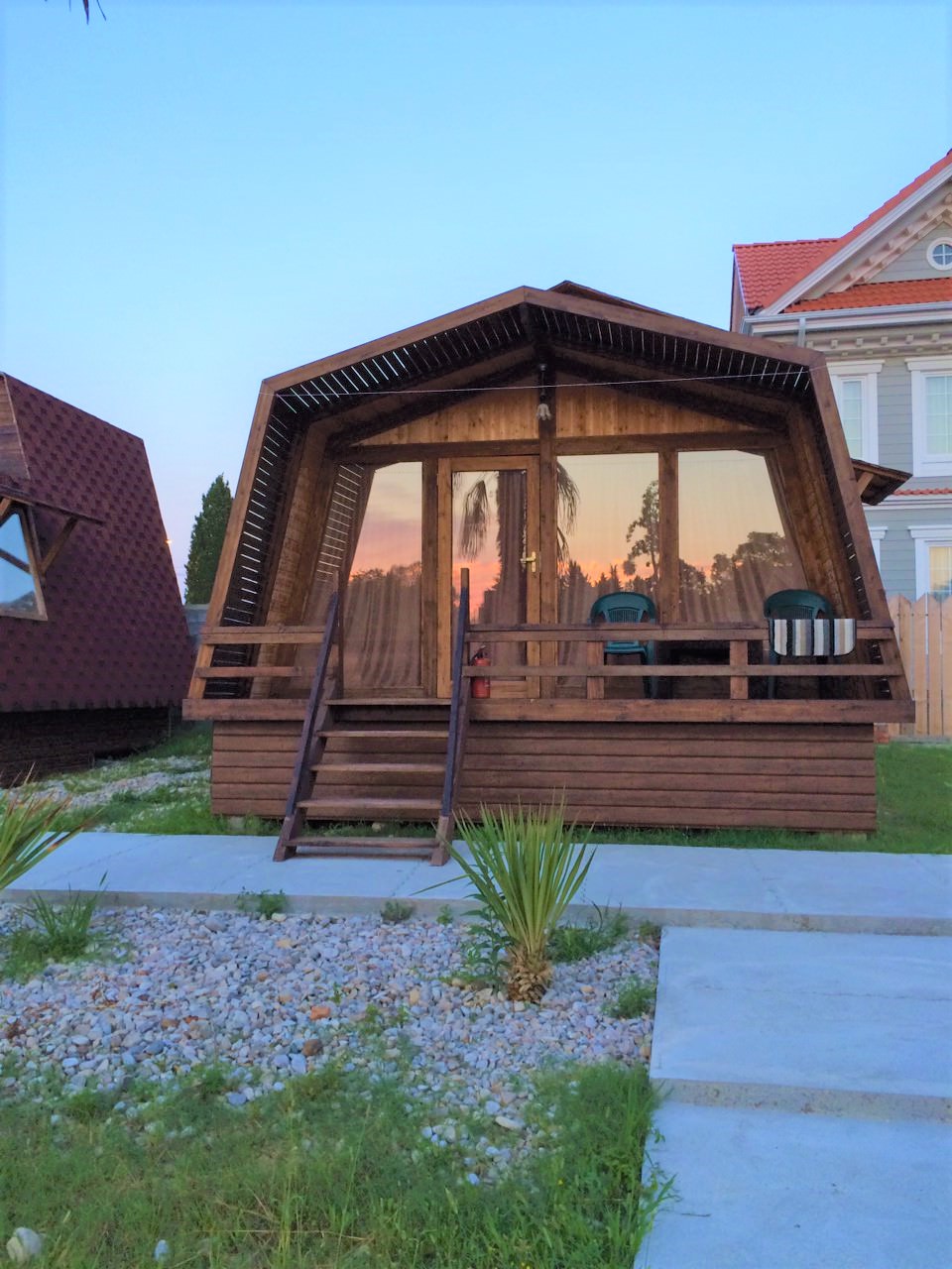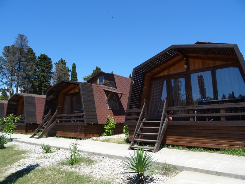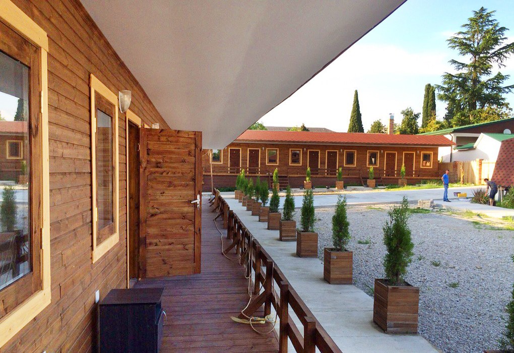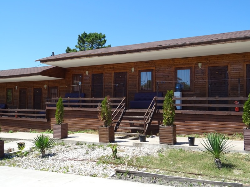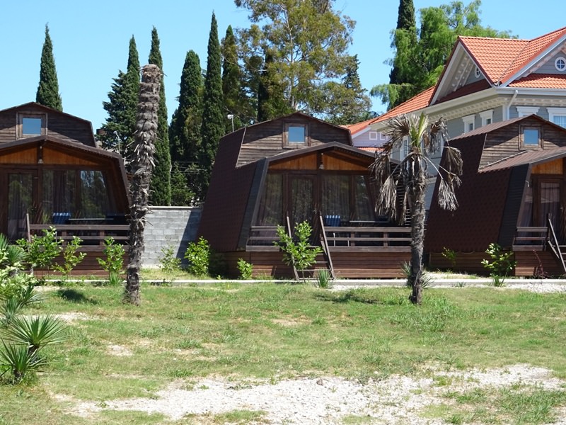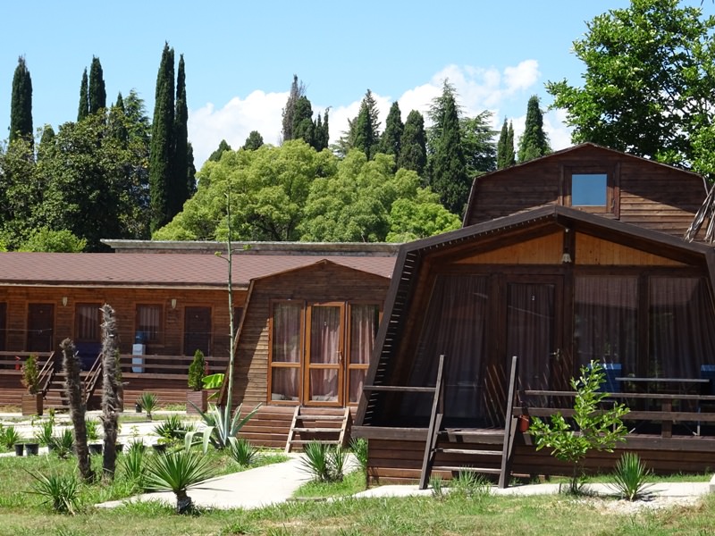 Комплекс небольших оригинальных коттеджей расположен в центральной части абхазской Гудауты всего в 200 метрах от Черноморского побережья. В шаговой доступности — гудаутский рынок, много кафе, столовых, продуктовых магазинов. Примерно в часе езды находится российская граница, а до аэропорта в Адлере 79 километров. 29 одноэтажных коттеджей из натурального дерева, рассчитанные на единовременное размещение 70 человек, занимают небольшую обустроенную территорию. В каждом коттедже есть индивидуальный санузел с душем, небольшая терраса, телевизор, кондиционер, необходимая мебель. На территории работает кафе, есть уютный сад для отдыха. В распоряжении гостей настольный теннис, взрослый батут, для автовладельцев предусмотрены парковочные места, доступен беспроводной интернет. Администрация отеля организует интересные экскурсии, как на джипах, так и на автобусах. Для детей обустроена игровая площадка с горками. В паре минут ходьбы находится городской песчано-галечный пляж.